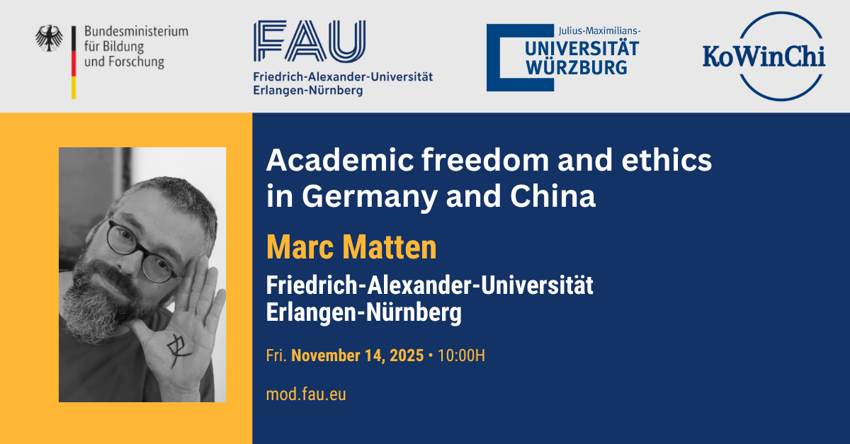Speaker: Prof. Dr. Marc Matten, FAU. Institute for Languages and Cultures of the Near and East East Asia, Chair of Sinology with a focus on the intellectual and cultural history of China (Alexander von Humboldt Professorship)
