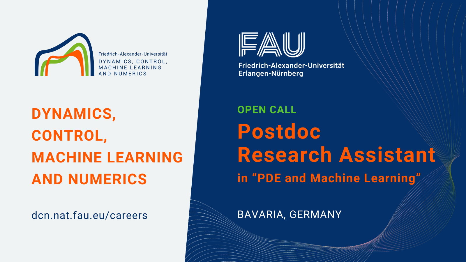The “Chair for Dynamics, Control, Machine Learning, and Numerics – Alexander von Humboldt Professorship (FAU DCN-AvH)”, led by Prof. Enrique Zuazua, invites applications from excellent candidates for a research assistant (postdoctoral) position.