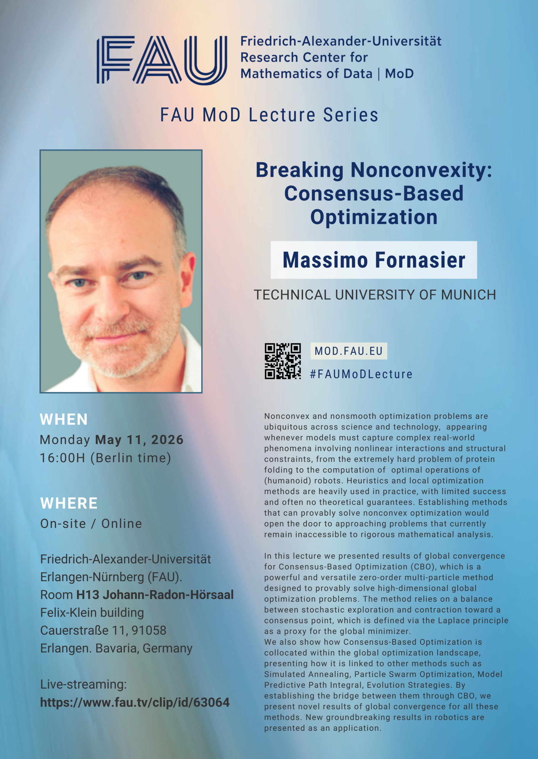 Organized by: FAU MoD, the Research Center for Mathematics of Data at Friedrich-Alexander-Universität Erlangen-Nürnberg (Germany)