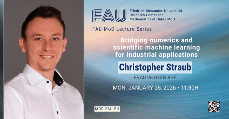 Date: Mon. January 26, 2026 Event: FAU MoD Lecture Organized by: FAU MoD, the Research Center for Mathematics of Data at Friedrich-Alexander-Universität Erlangen-Nürnberg (Germany) FAU MoD Lecture: FAU MoD Lecture: Bridging numerics and scientific machine learning for industrial applications Speaker: Dr. Christopher Straub Affiliation: Fraunhofer IISB (Germany) Abstract. In this talk, we discuss digital solutions …